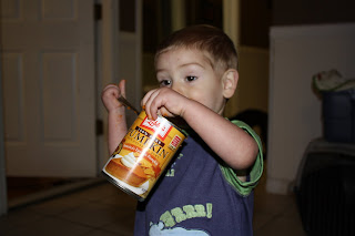 He thinks that pumpkin puree is the best thing on earth.....he actually came and stole this from me while I was baking today!!